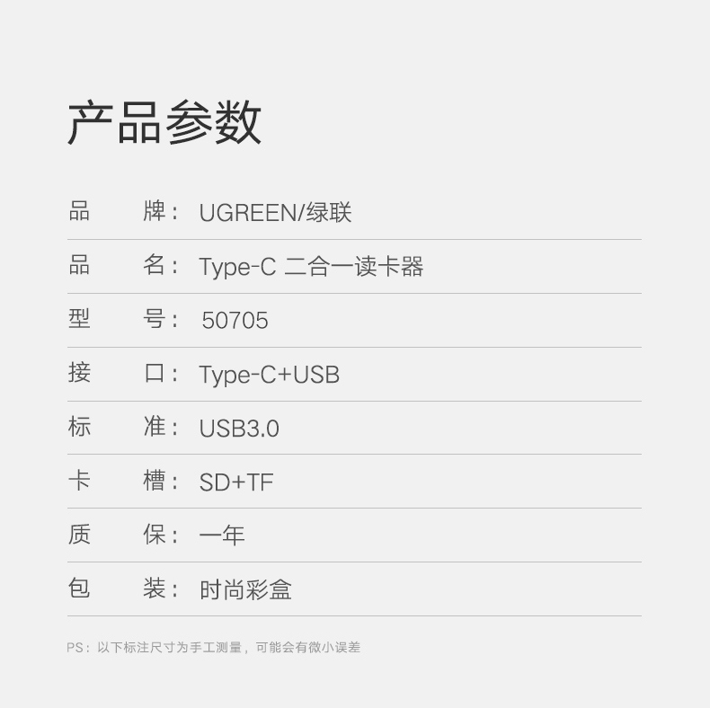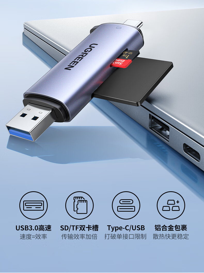 商品名稱:綠聯(lián) USB/Type-C讀卡器 3.0高速 SD/TF多功能 適用電腦蘋果15/iPad/安卓手機(jī) 支持相機(jī)無人機(jī)監(jiān)控內(nèi)存卡