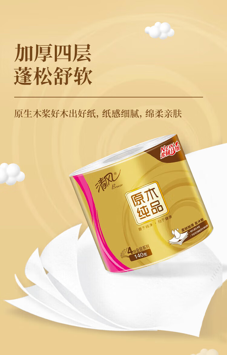 商品名稱:清風(fēng) 有芯卷紙 原木金裝 4層加厚140克*30卷 衛(wèi)生紙卷筒紙紙巾 整箱