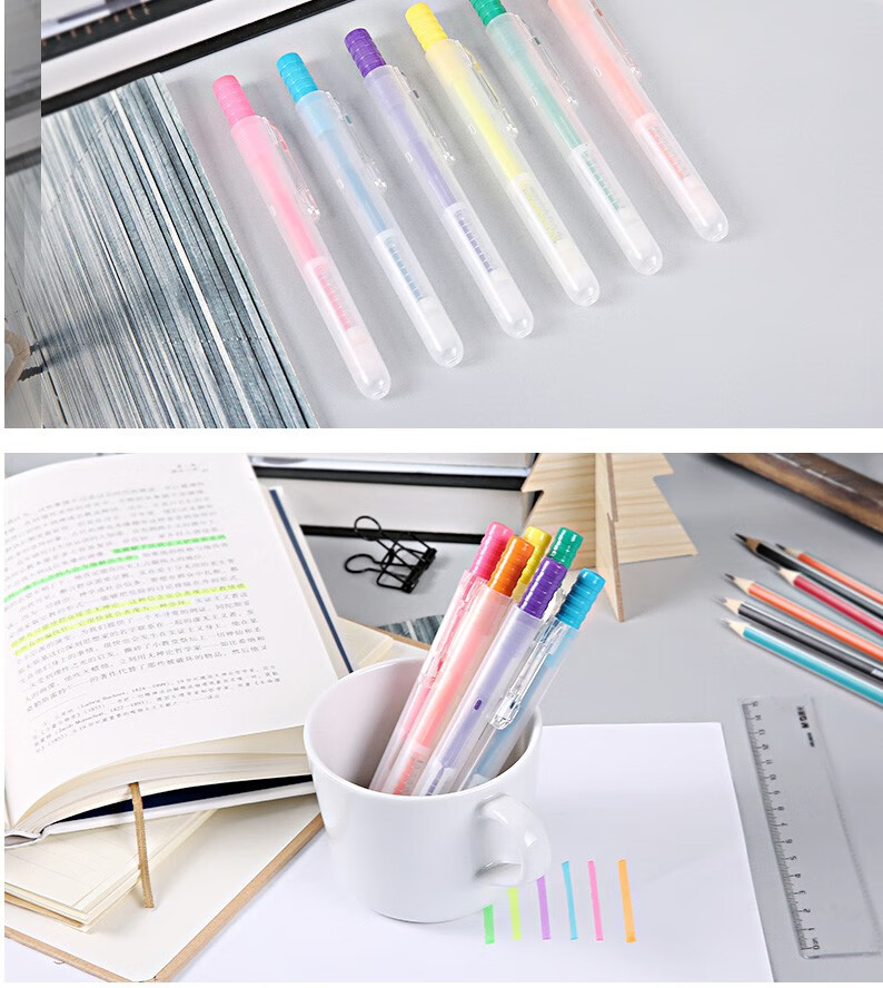 商品名稱:晨光AHM27301 熒光筆 按動記號筆6色彩色筆重點標記區(qū)分醒目水性筆 6支裝