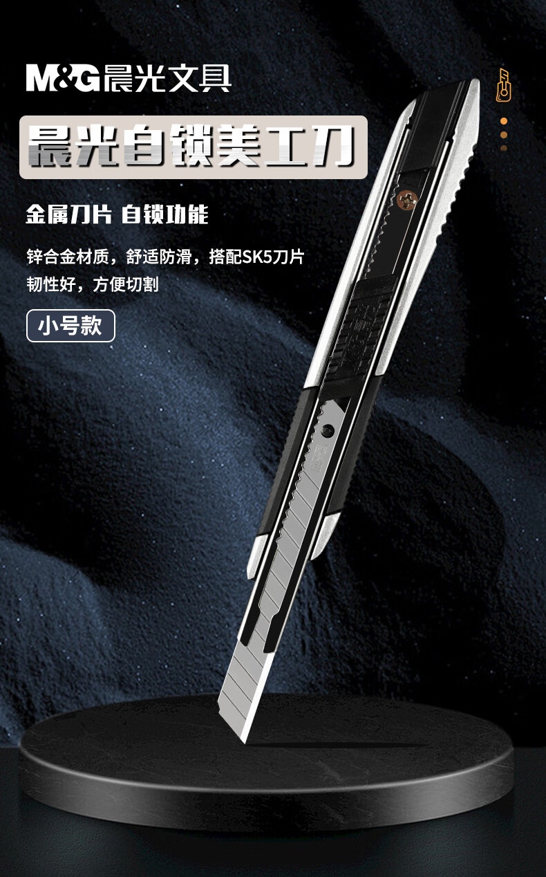 商品名稱:晨光ASS91359 小號(hào)美工刀 9mm鋅合金金屬自鎖裁紙刀壁紙刀 銀色單把裝