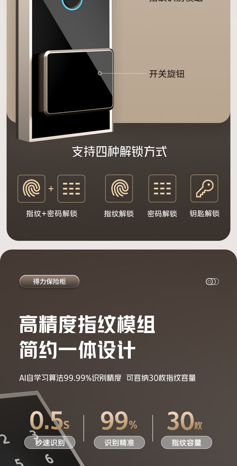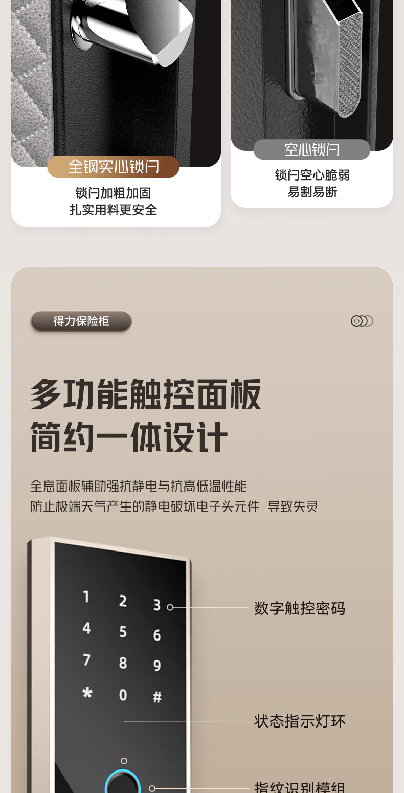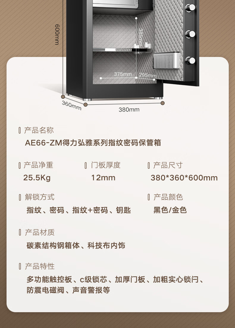 商品名稱:得力AE66-ZM 保險(xiǎn)柜 家用指紋密碼保險(xiǎn)箱辦公小型保密箱可入墻入柜保險(xiǎn)箱床頭保管箱 60cm曜巖黑 弘雅系列