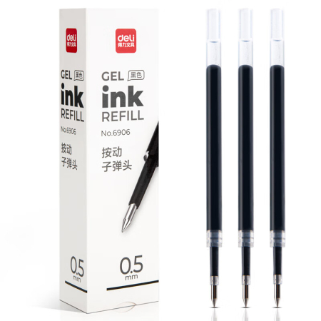 商品名稱:得力6906 按動中性筆芯 學(xué)生辦公水筆簽字筆替芯 0.5mm子彈頭 20支/盒