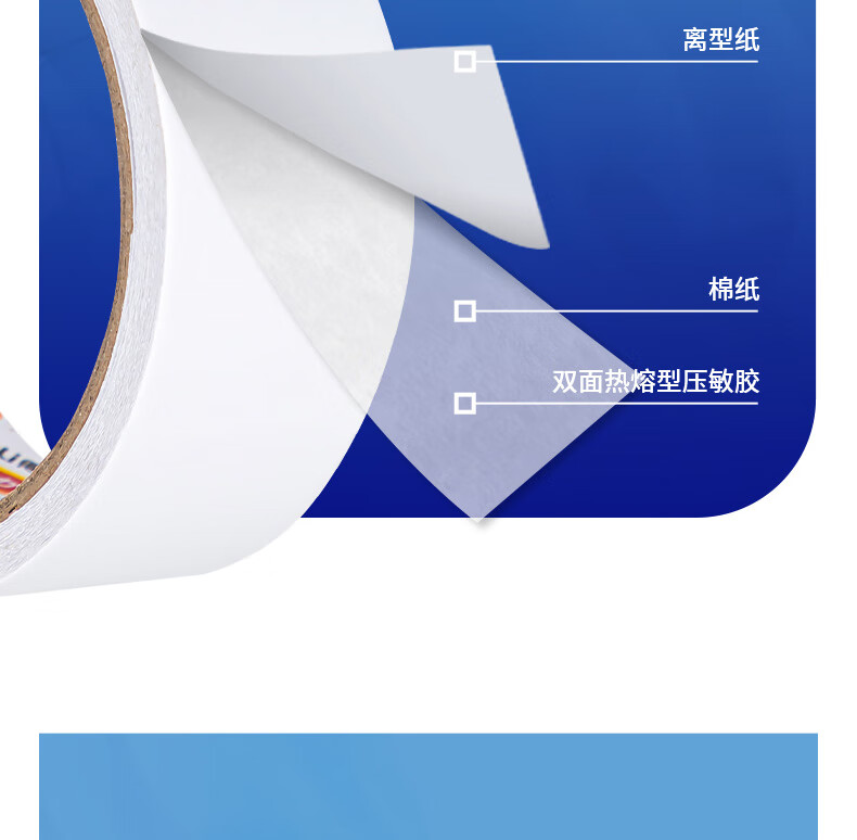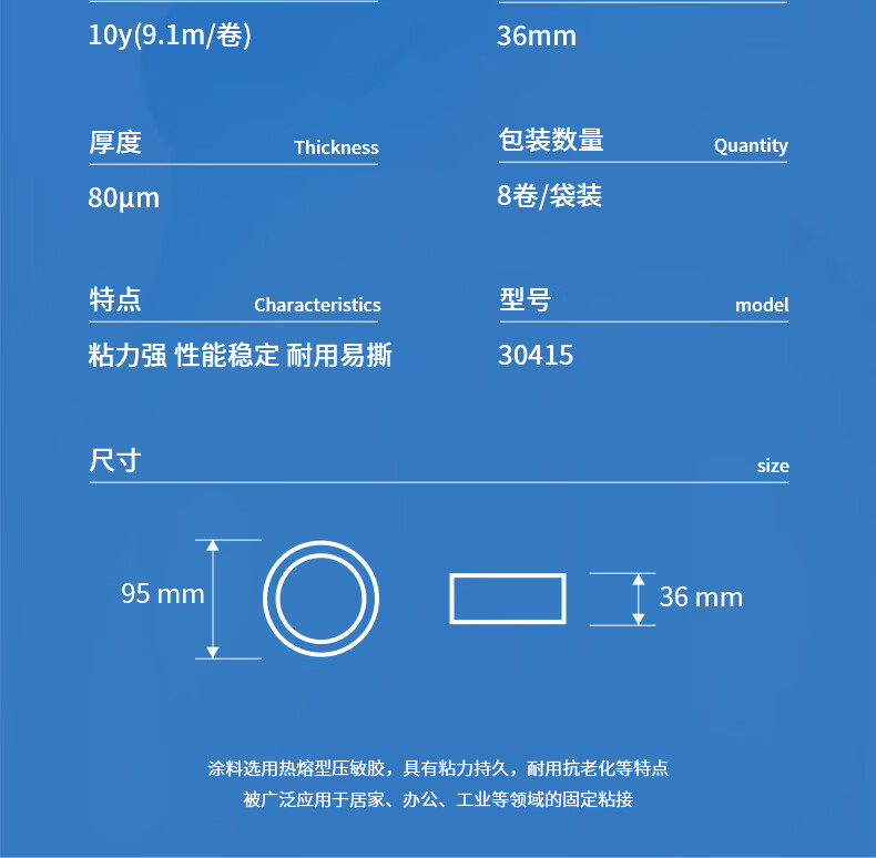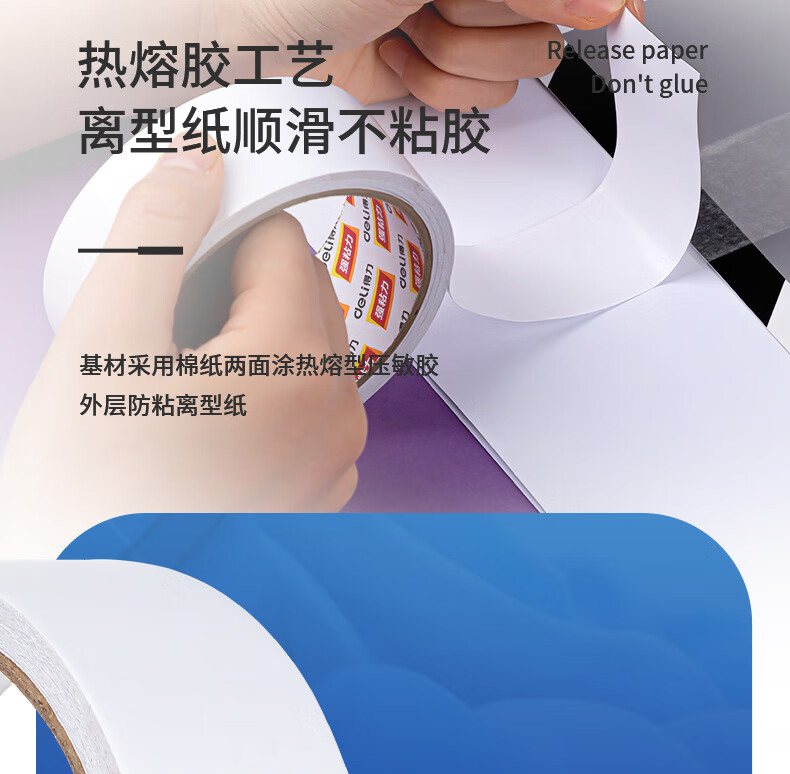 商品名稱:得力30415 高粘棉紙雙面膠帶 學生文具手工制作 36mm*10y(9.1m/卷) 白色 辦公用品 8卷/筒