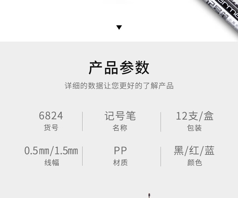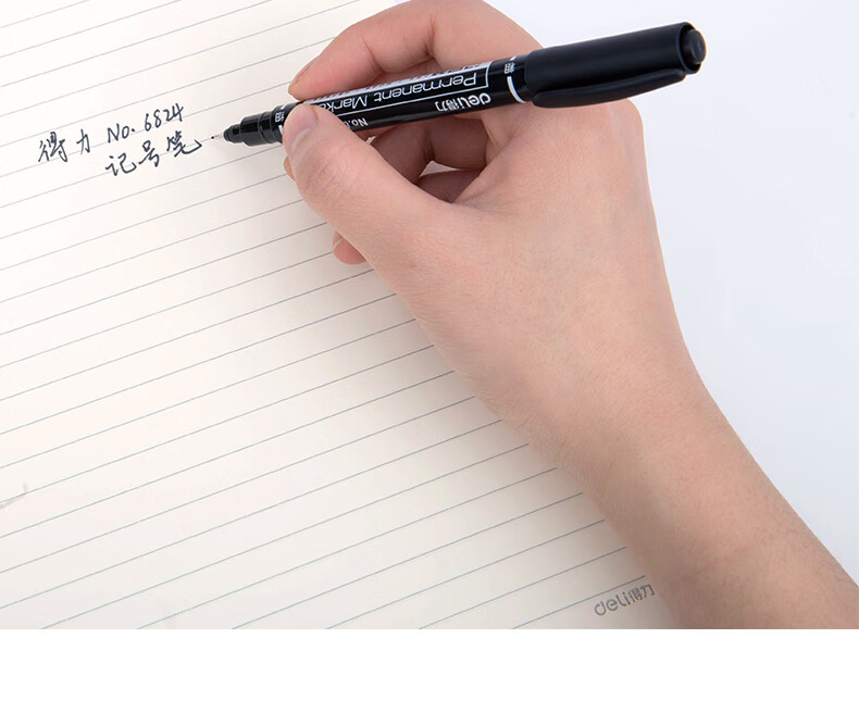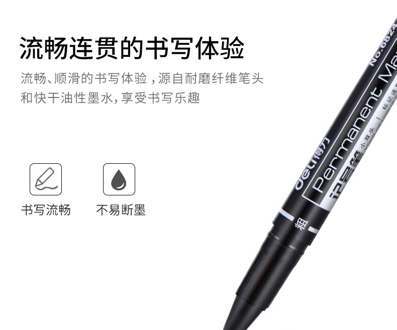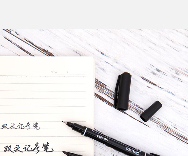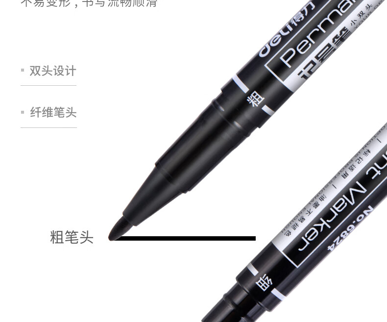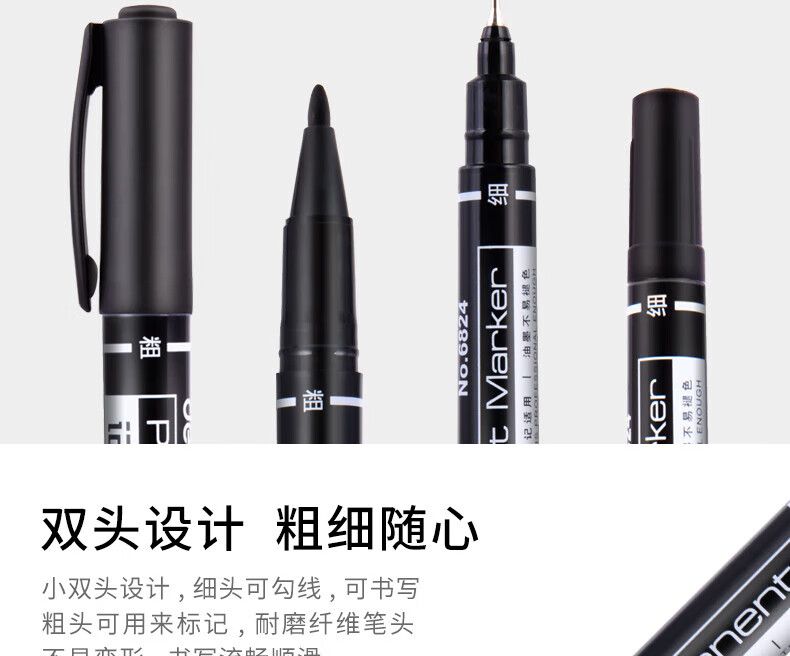 商品名稱:得力6824 雙頭油性記號筆 辦公物流會議筆馬克筆 美術勾線筆 黑色 12支/盒