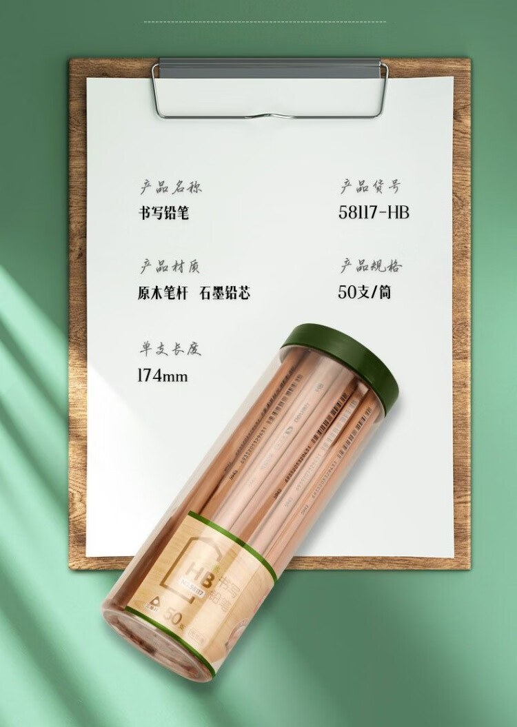 商品名稱:得力58117 原木鉛筆 木之然系列三角桿HB鉛筆 50支/桶