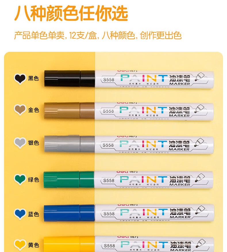 商品名稱:得力S558 油漆筆 粗桿修補(bǔ)記號筆 手繪涂鴉筆 2.0mm防水不掉色簽名筆簽到筆 單支裝