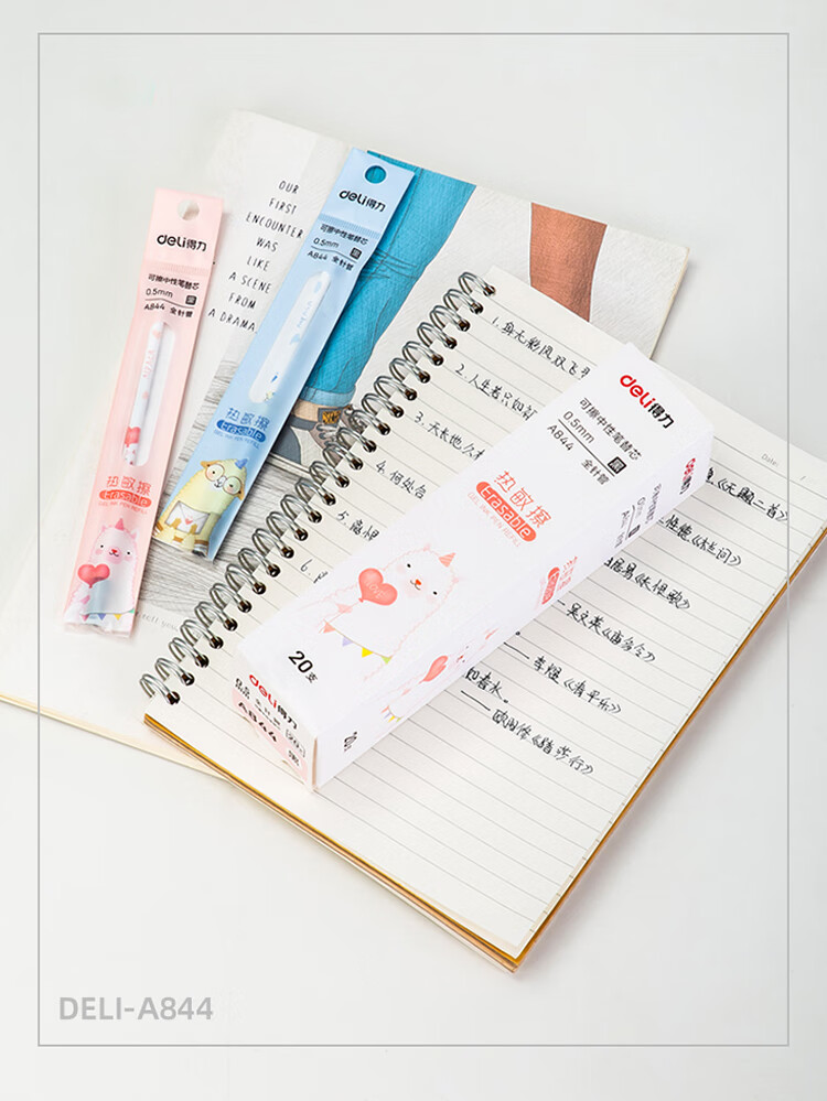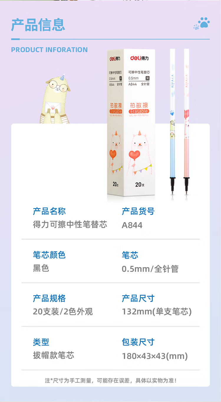 商品名稱:得力A844 熱可擦筆芯 0.5mm全針管中性筆水筆簽字筆替芯 黑色 20支/盒