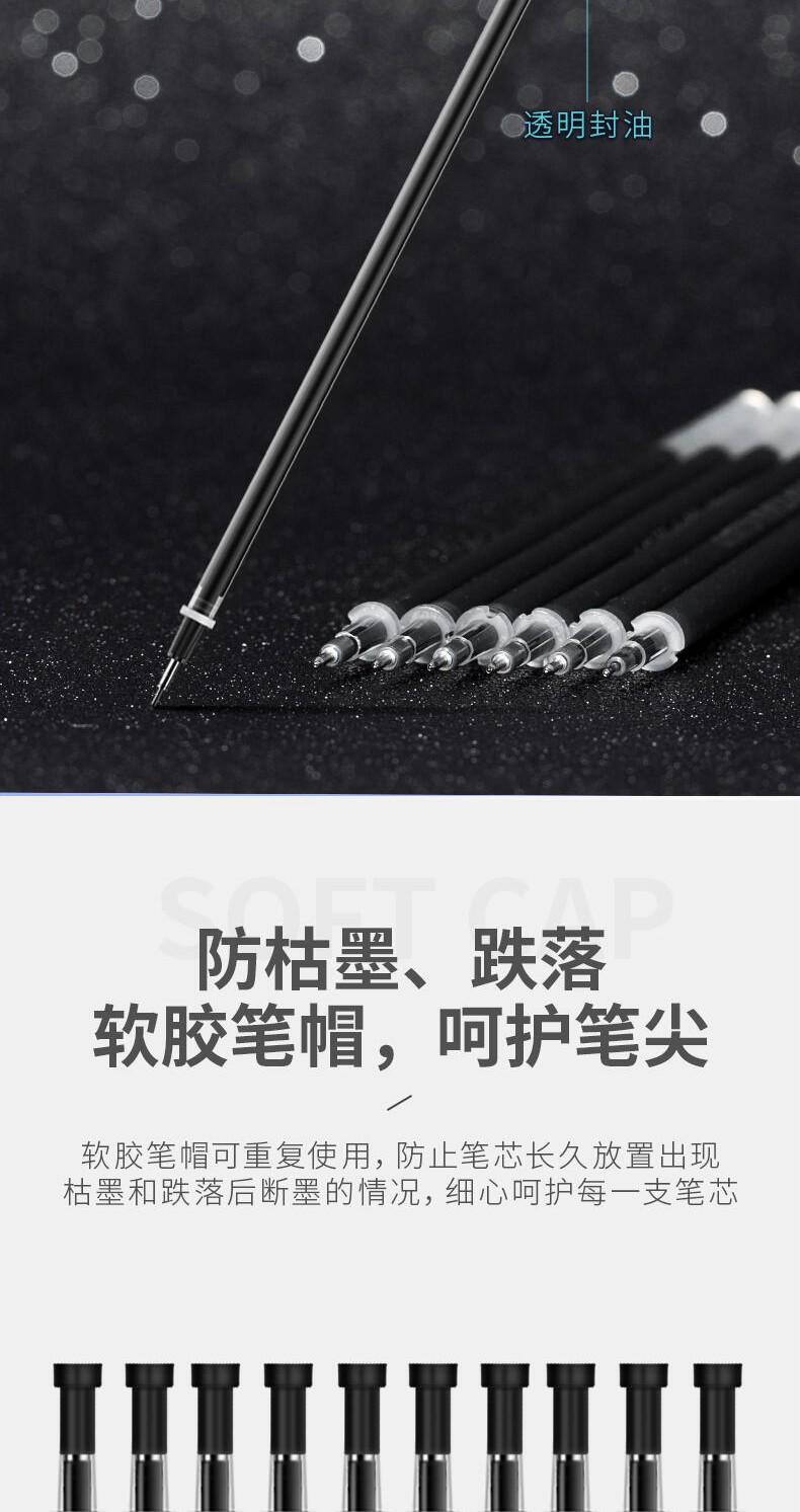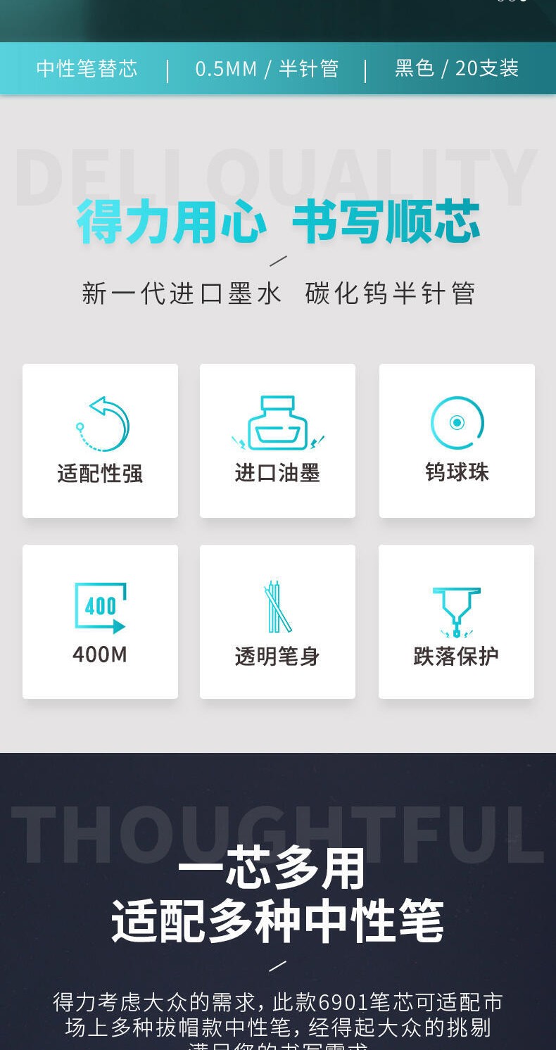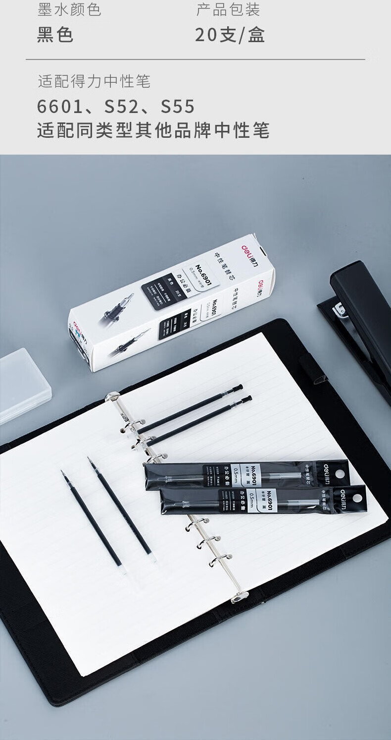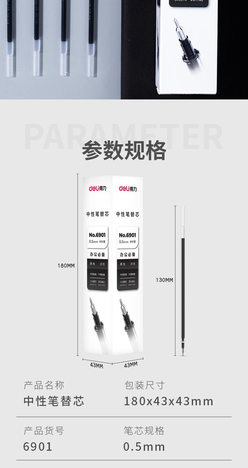 商品名稱:得力6901 筆芯 0.5mm半針管中性筆水筆簽字筆替芯 辦公用品 20支/盒