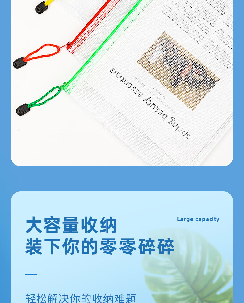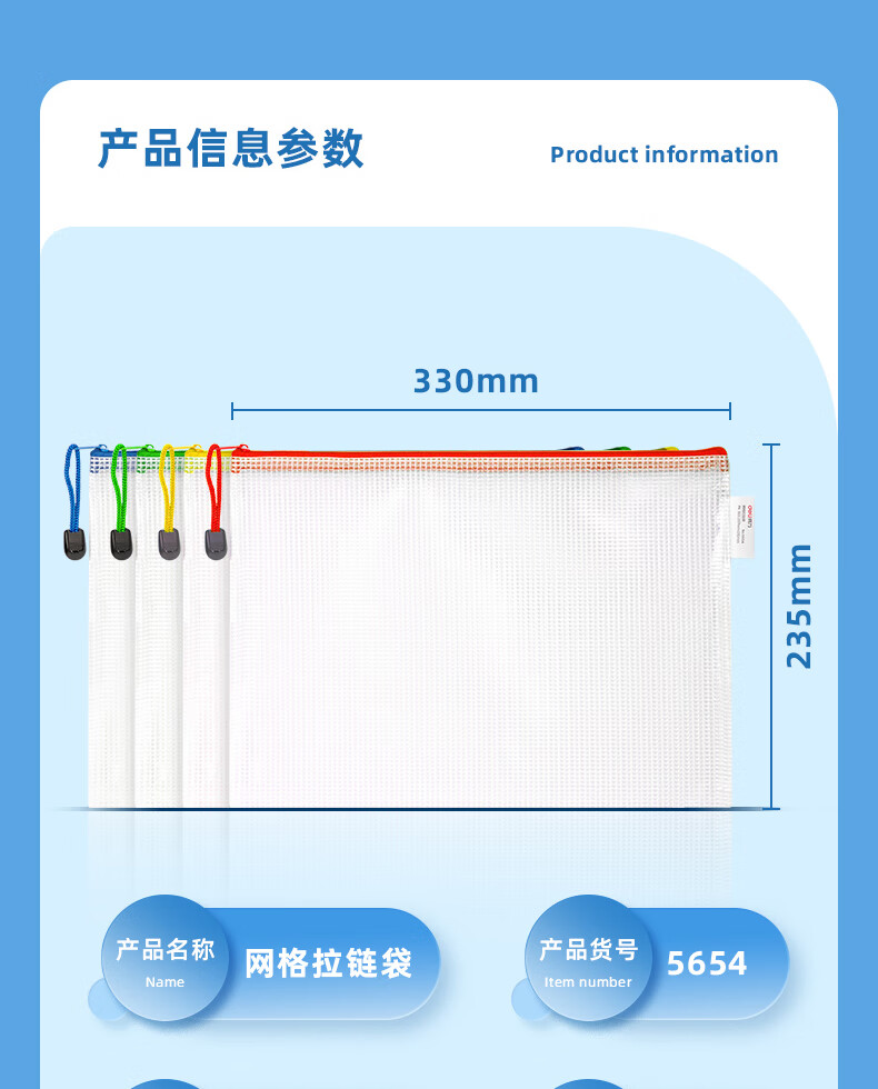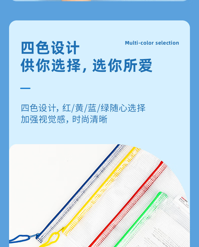商品名稱:得力5654 網(wǎng)格拉鏈袋 A4收納袋透明文件袋資料袋科目袋學(xué)科袋 顏色隨機(jī) 單個裝