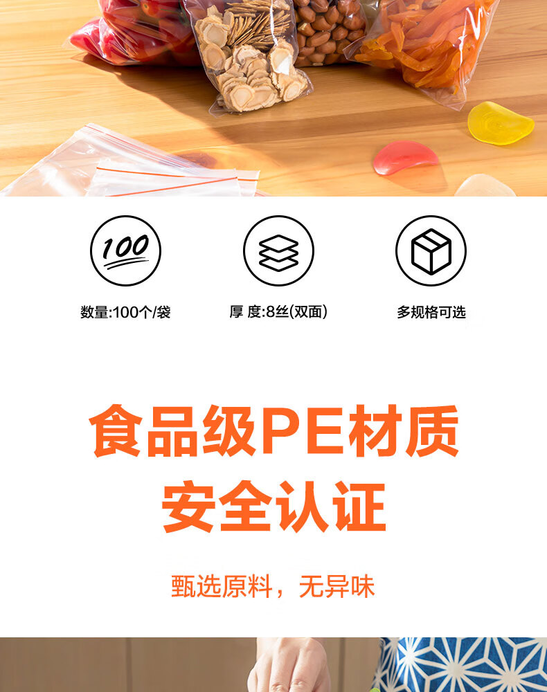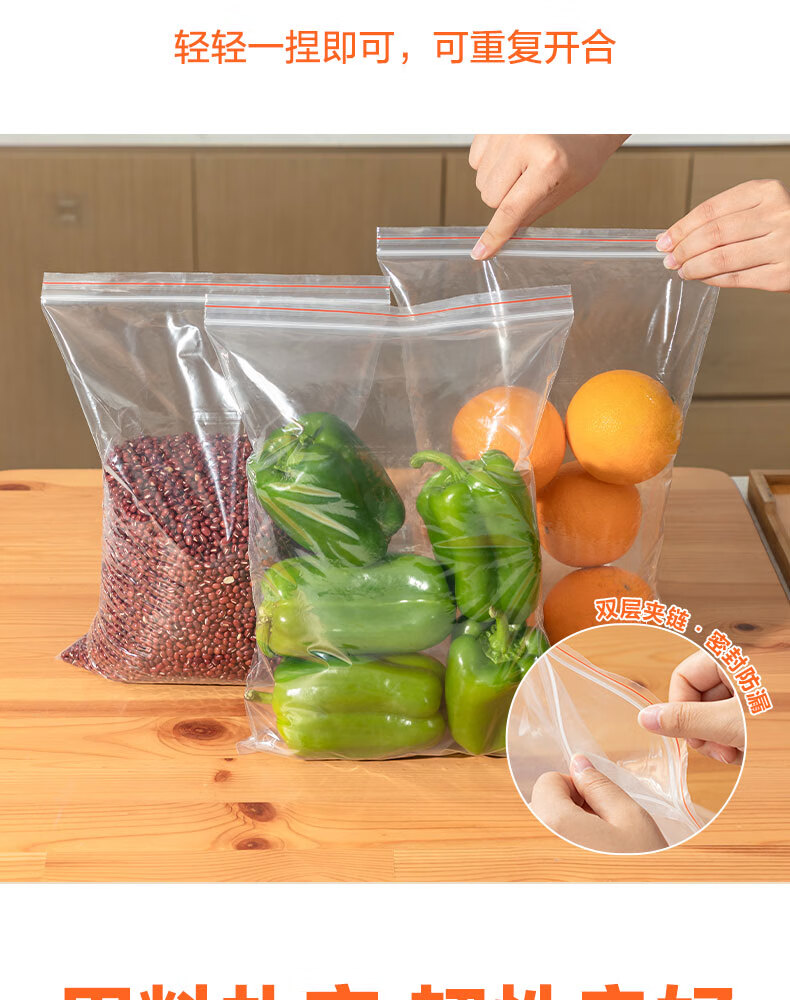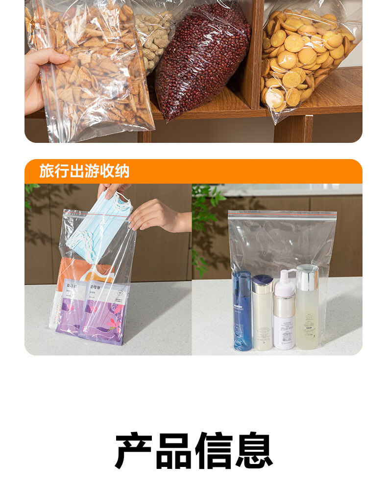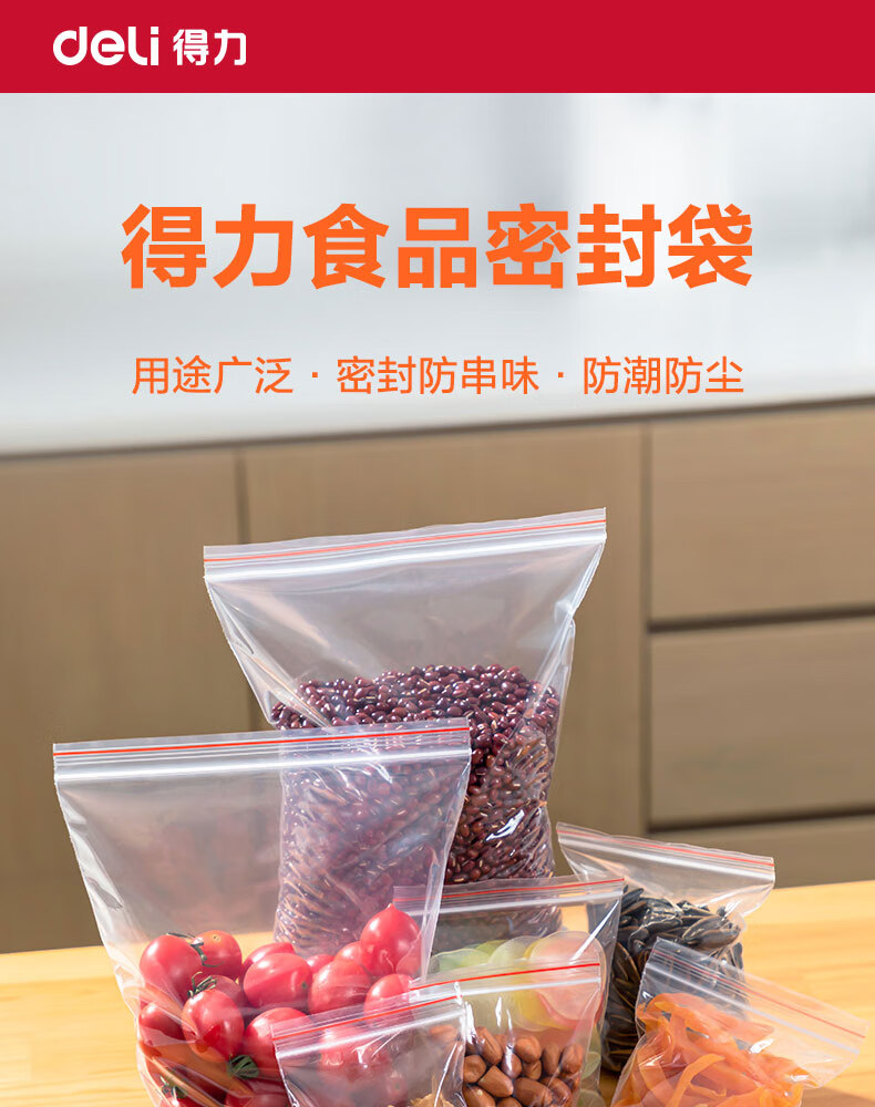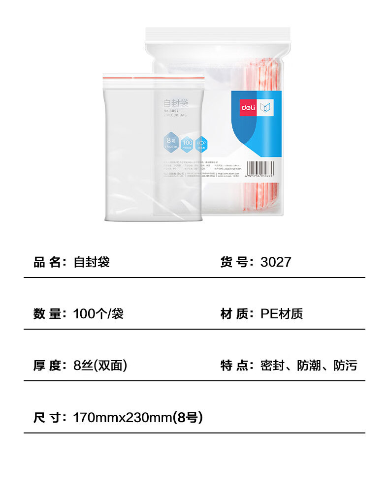 商品名稱:得力3027 食品密封袋 8號(hào)23*17cm 防水防塵保鮮收納PE透明 100只/包