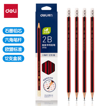 商品名稱:得力S936 鉛筆 2B高級鉛筆(紅色)(12支/盒)
