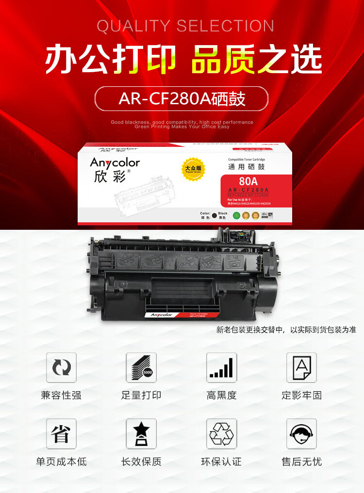 商品名稱:欣彩AR-CF280A硒鼓 大眾版 適用惠普HP CF280A 80A M401d M401n M401dn M401dw MFP M425f M425dn激光打印機(jī)
