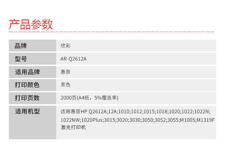 商品名稱:欣彩AR-Q2612A硒鼓 大眾版 適用惠普HP Q2612A 12A 1010 1012 1015 1018 1020 1022 1022N 1022NW激光打印機(jī)