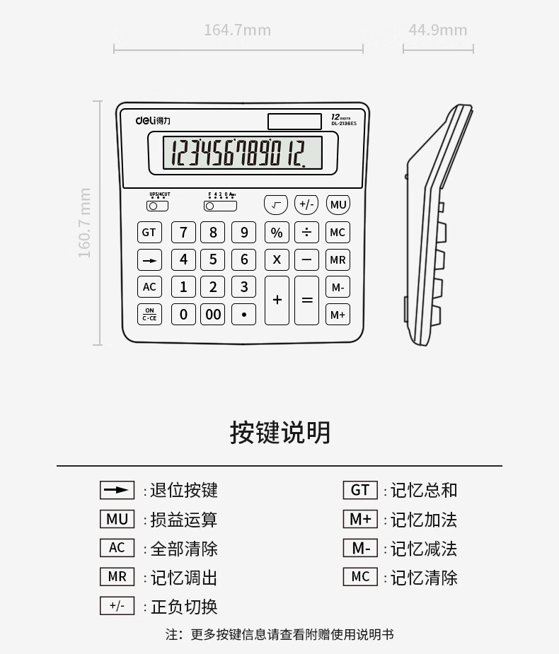 商品名稱:得力2136ES 雙電源電腦按鍵計(jì)算器 12位大屏大號(hào)計(jì)算機(jī) 單個(gè)裝