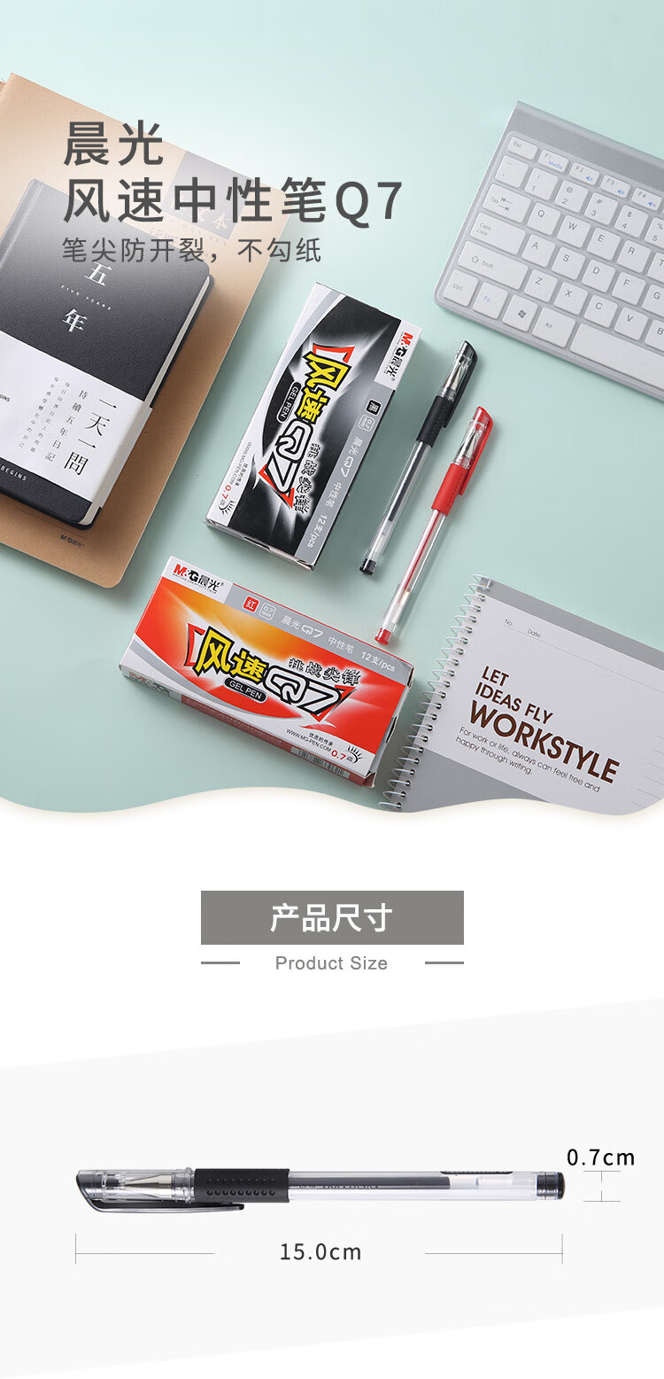 商品名稱:晨光AGP30105 風(fēng)速Q(mào)7黑色中性筆 0.7mm拔蓋款會議筆簽字筆水筆 12支/盒
