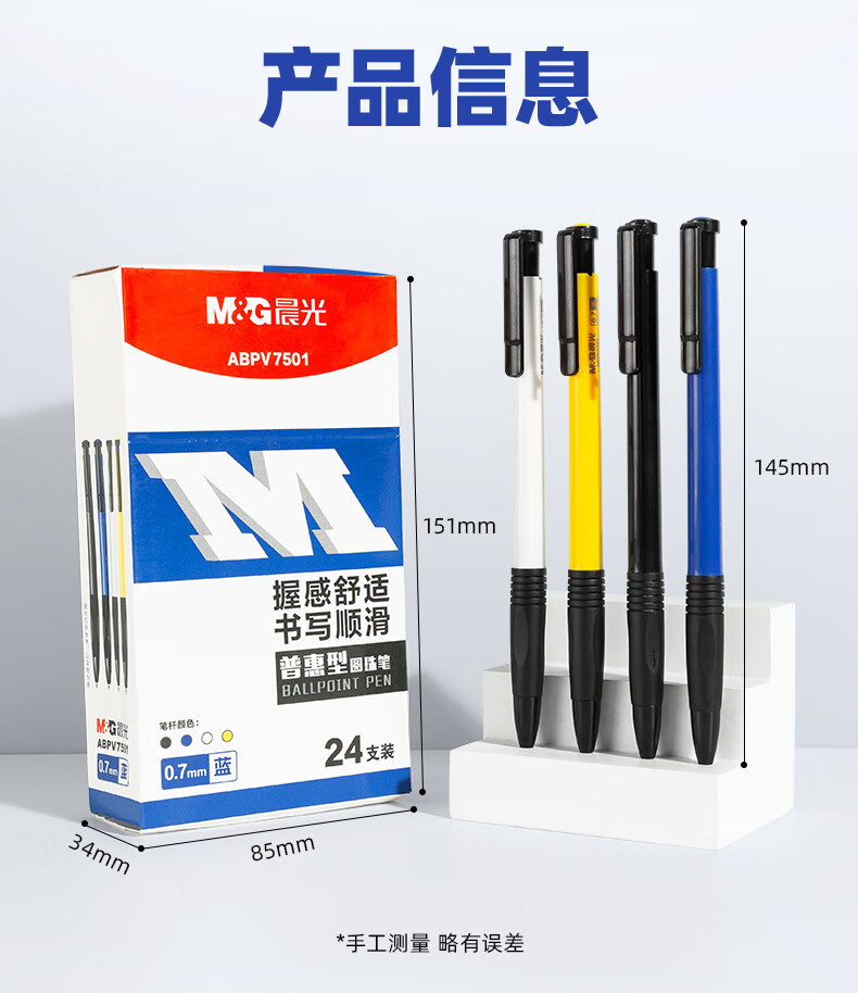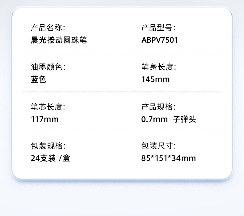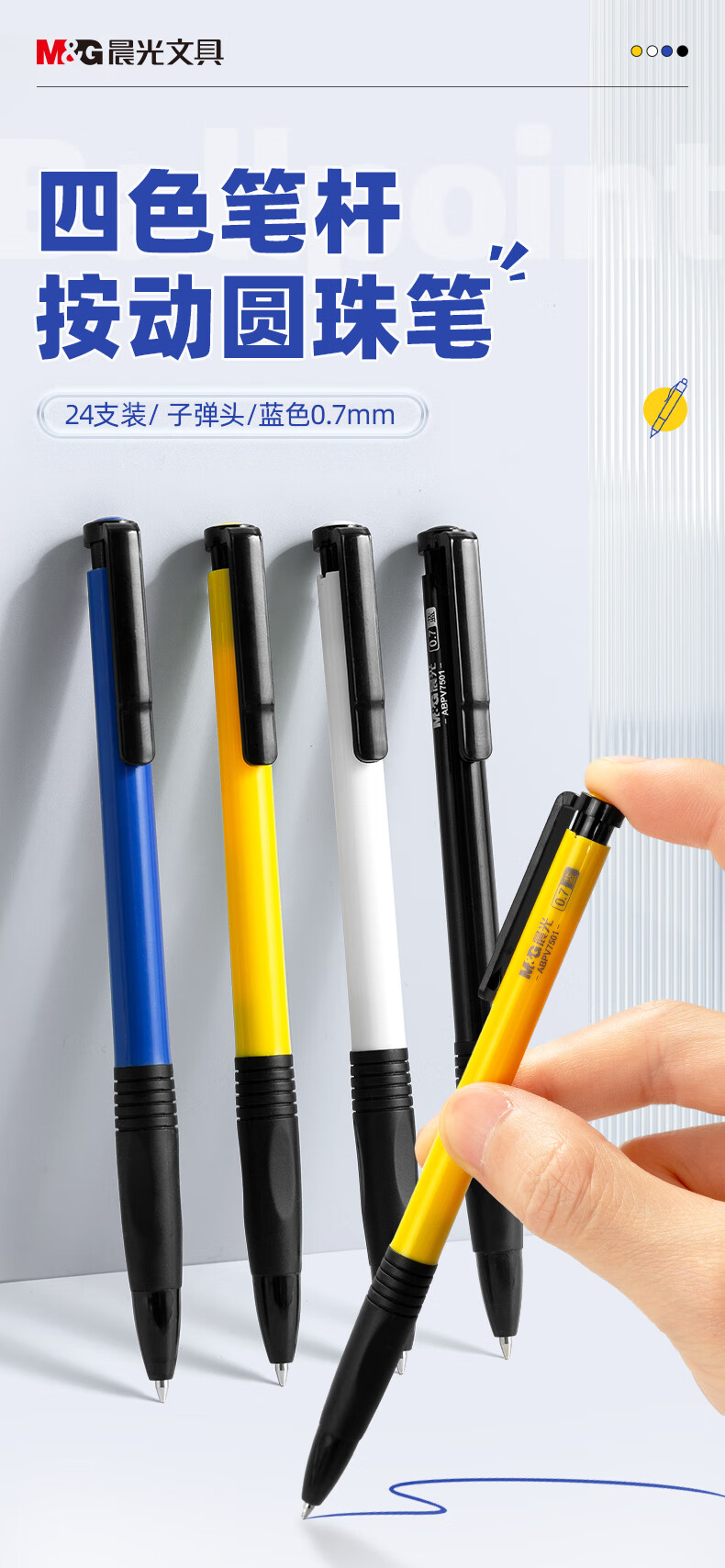 商品名稱(chēng):晨光ABPV7501 按動(dòng)圓珠筆 0.7mm經(jīng)典子彈頭原子筆 普惠型中油筆 24支/盒