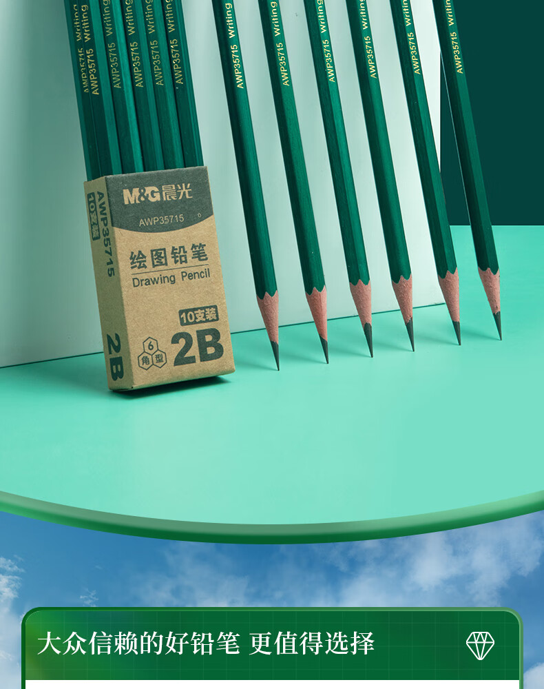 商品名稱:晨光AWP35715 2B鉛筆 經(jīng)典綠桿六角木桿鉛筆 10支/盒