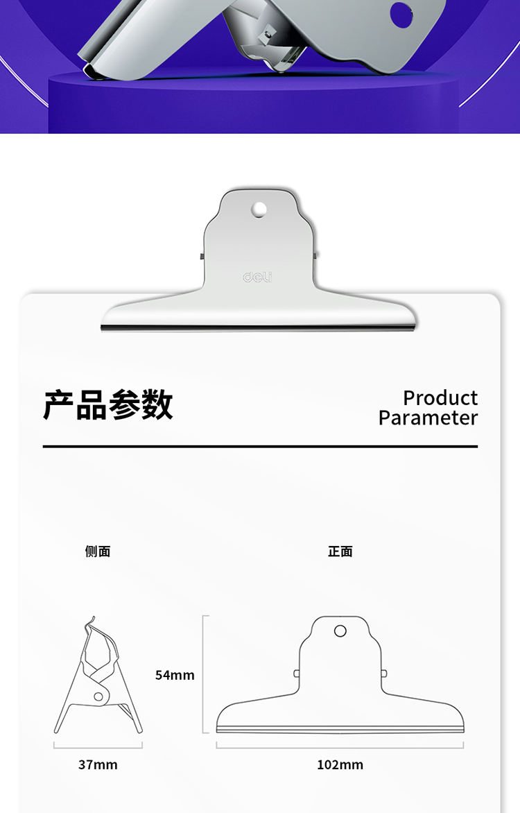 商品名稱:得力9532 山形鐵票夾 102mm中號財務(wù)金屬票據(jù)文件夾子 辦公用品 3只/包