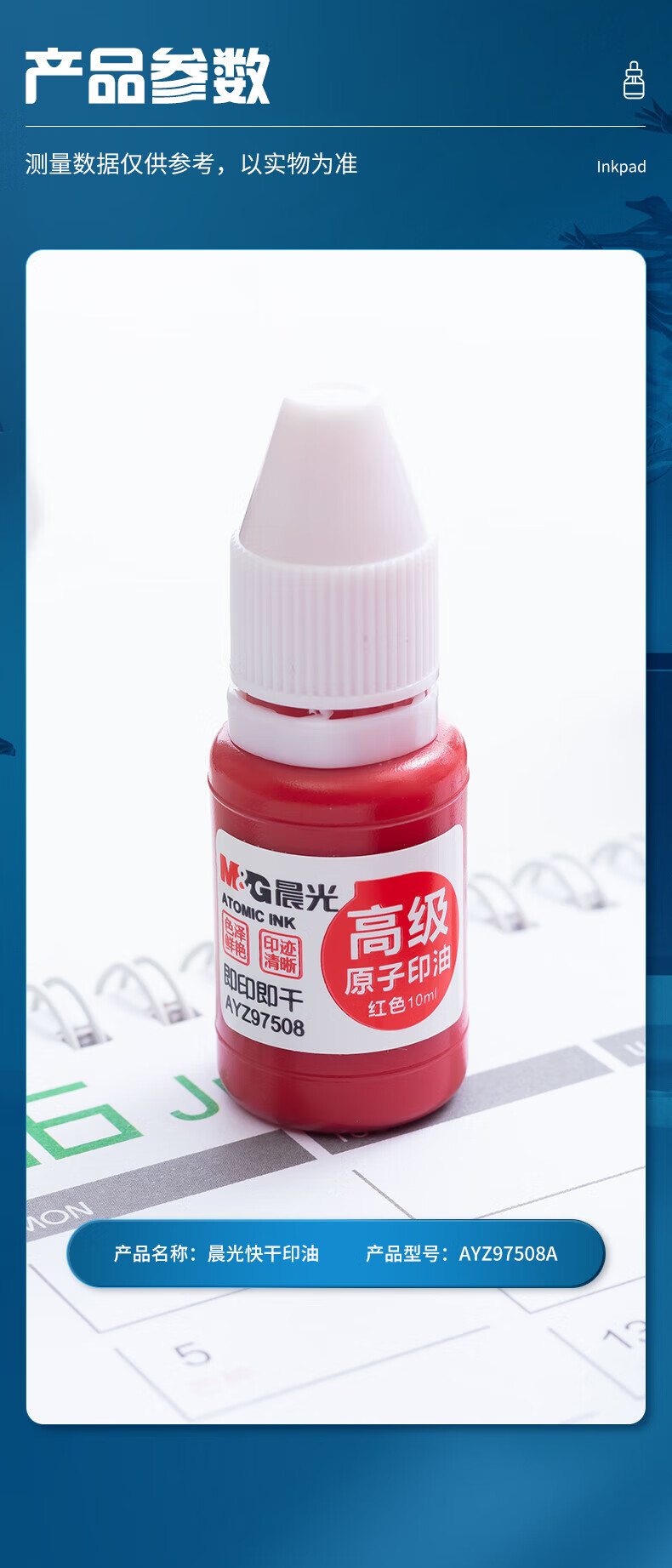 商品名稱:晨光AYZ97508A 原子印油 10ml財務(wù)紅色印章印臺專用印油 單瓶裝