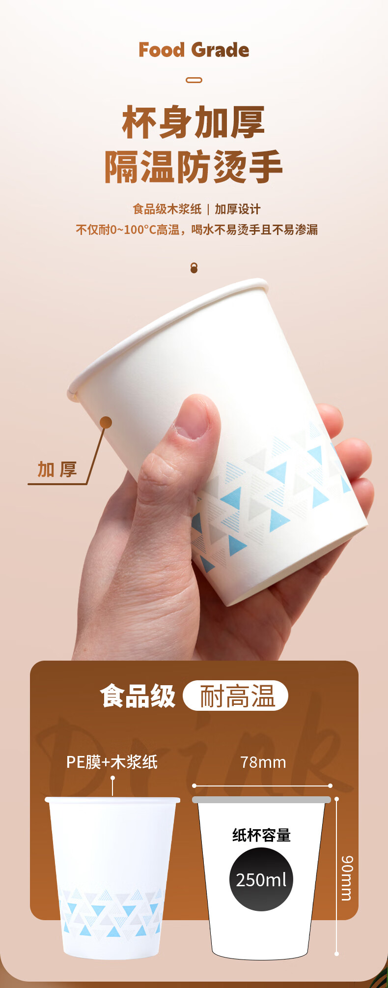 商品名稱:晨光250ml加厚型紙杯 9盎司一次性水杯茶水杯子 100只/袋ARC92514