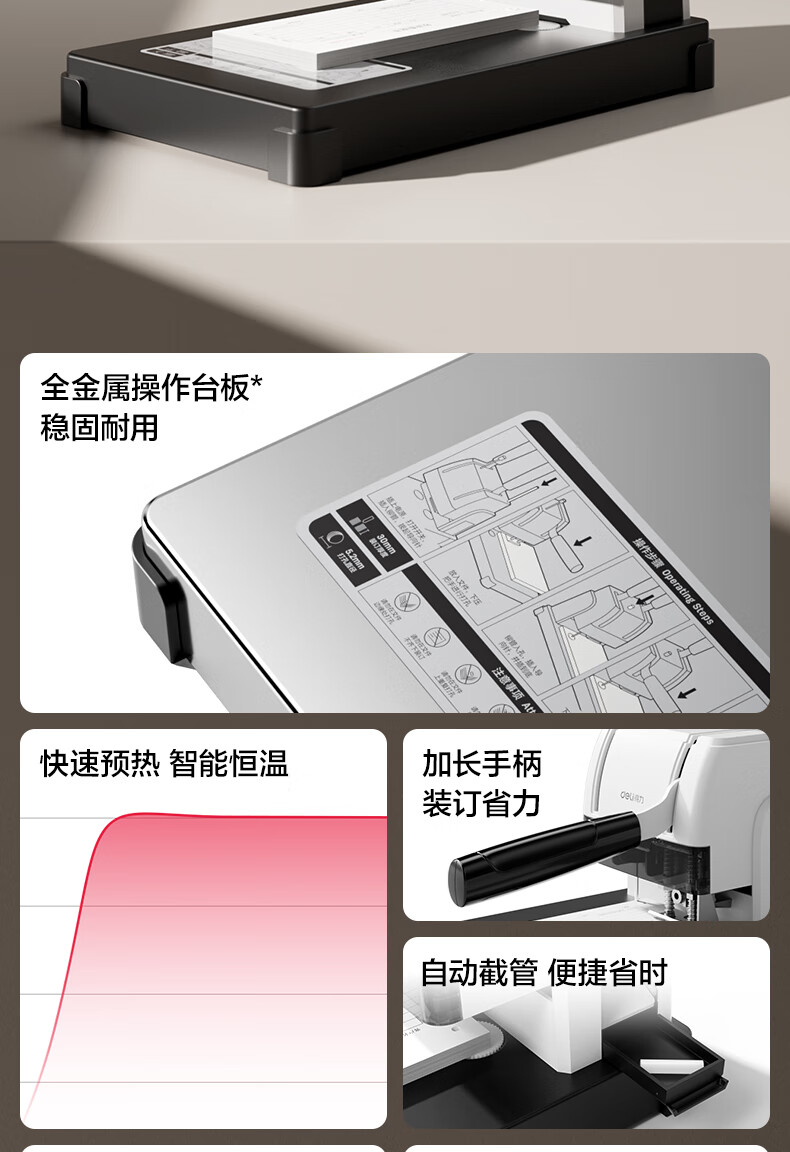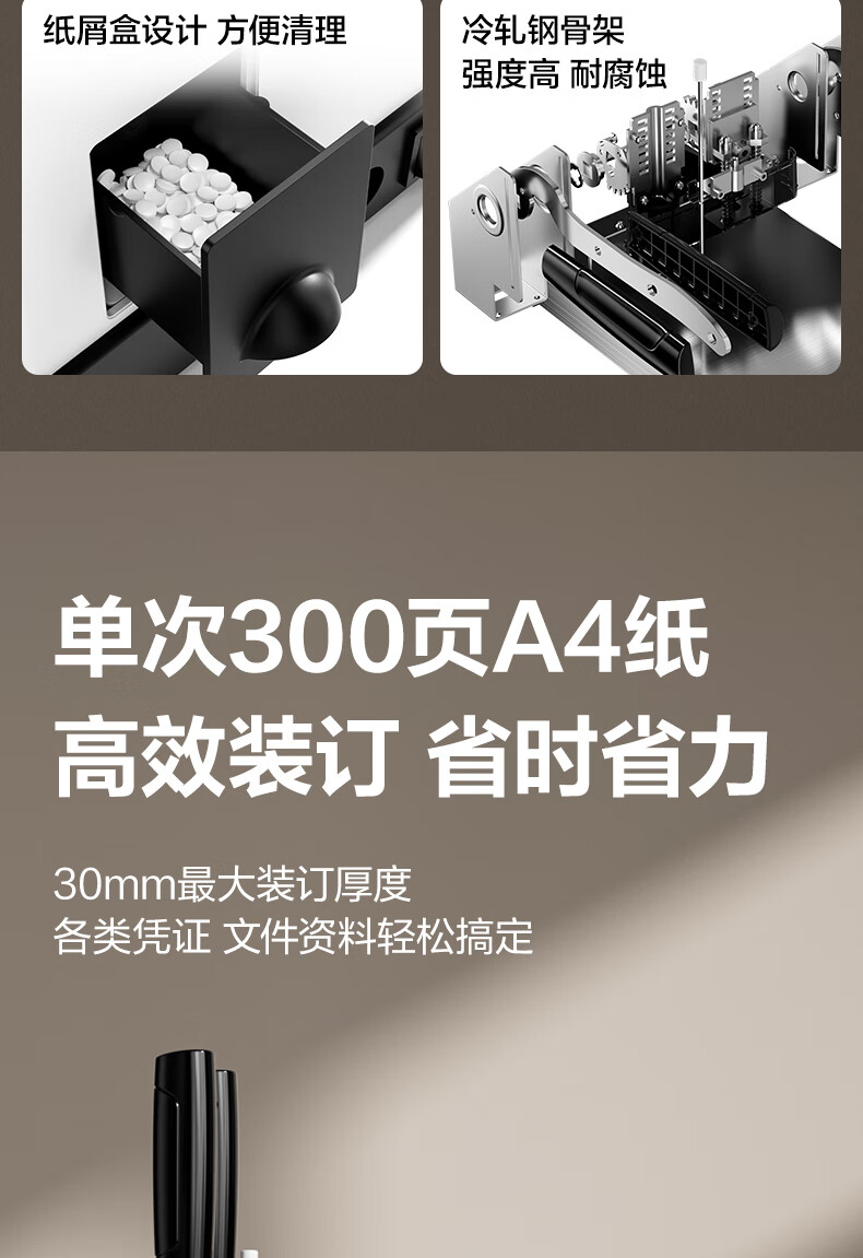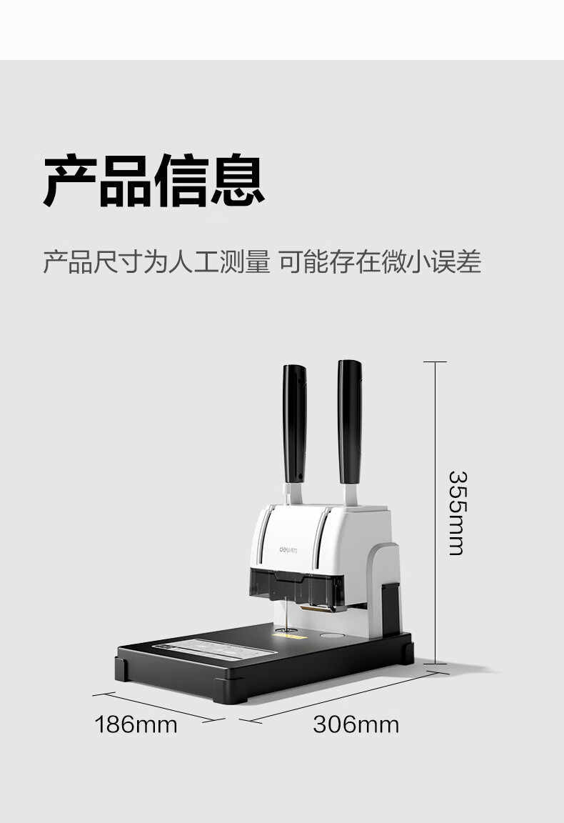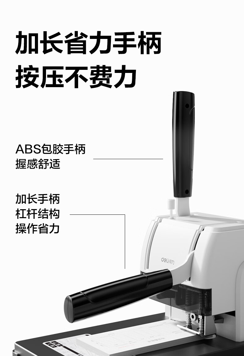 商品名稱:得力30mm熱熔手動裝訂機 300頁財務(wù)裝訂機手動打孔機33015