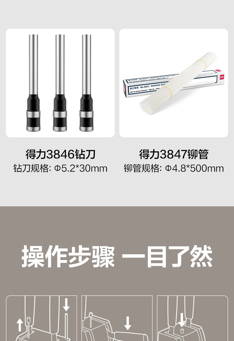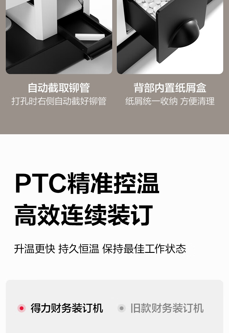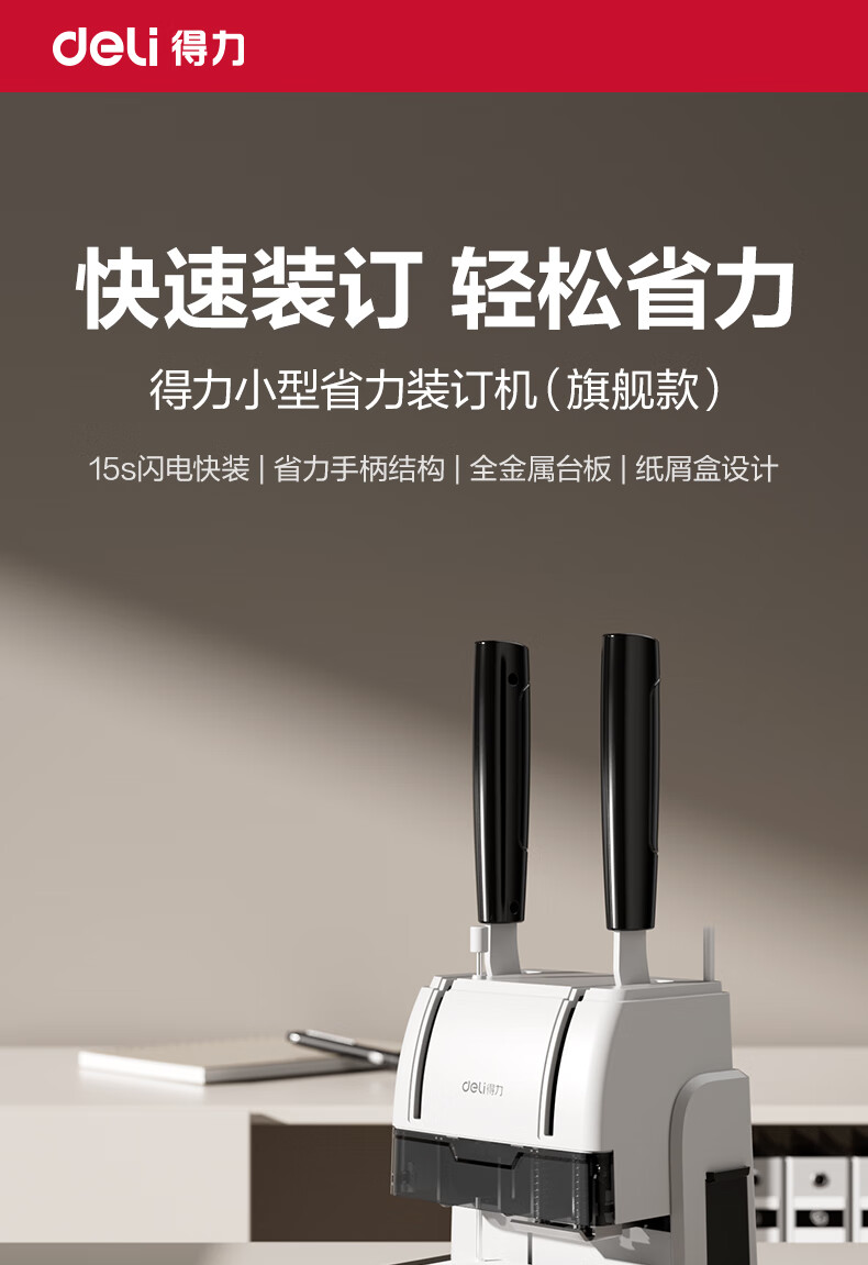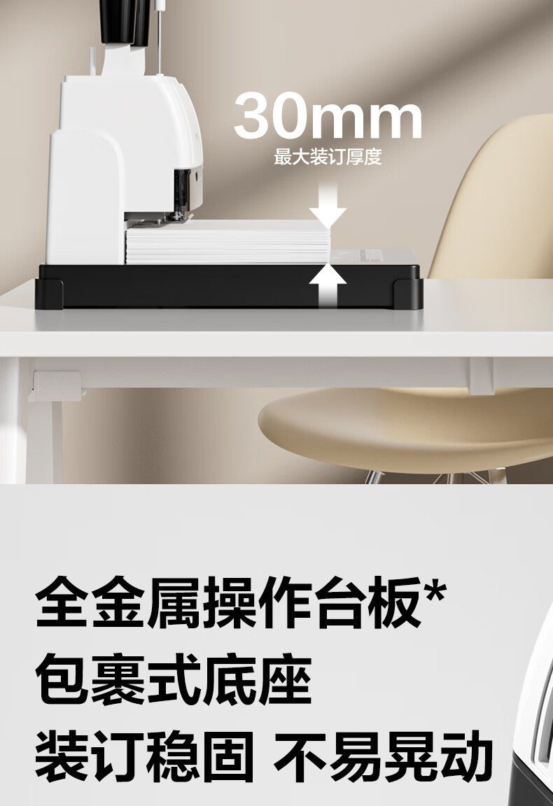 商品名稱:得力30mm熱熔手動裝訂機 300頁財務(wù)裝訂機手動打孔機33015