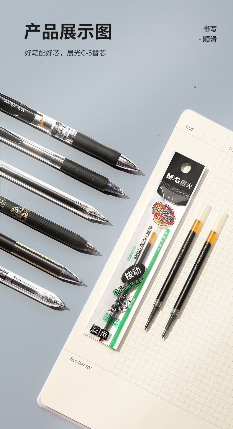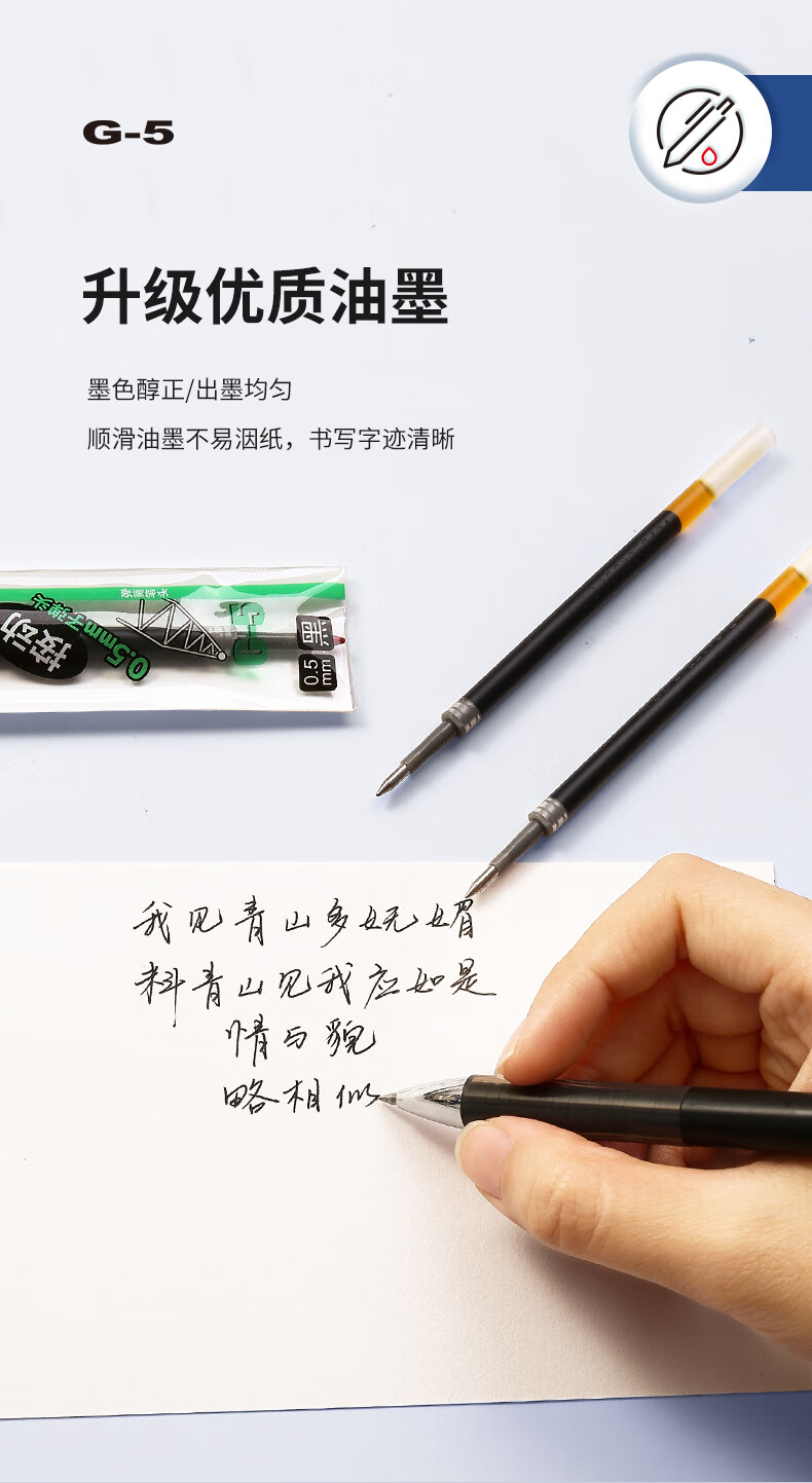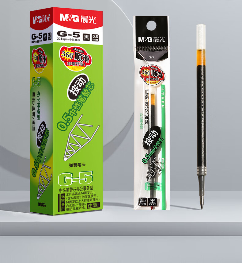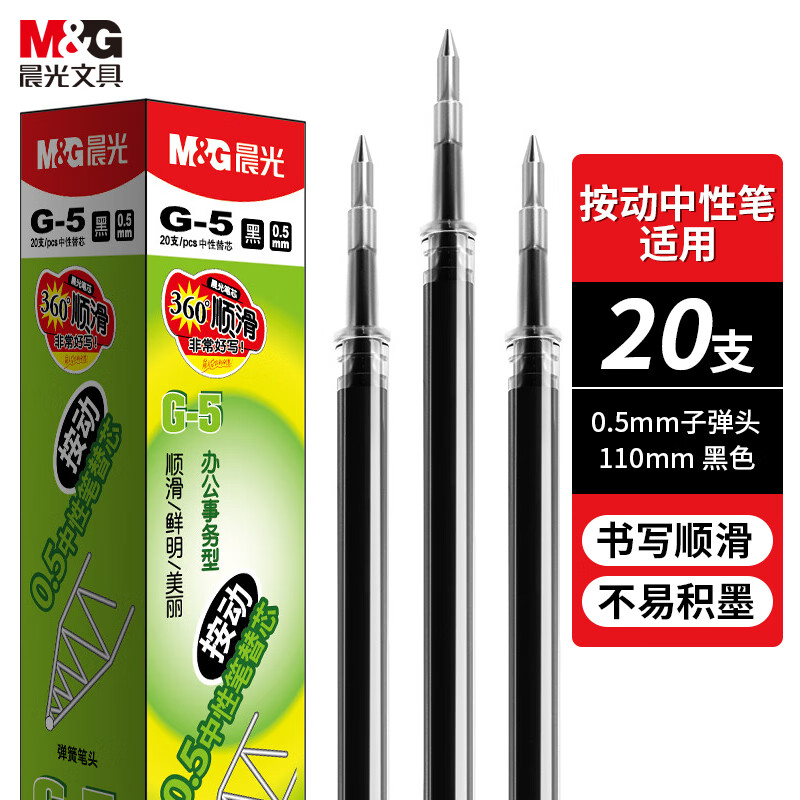 商品名稱:晨光G-5 中性筆芯 0.5mm按動子彈頭簽字筆替芯 水筆芯 1008/K35/S01/S08適用 20支/盒