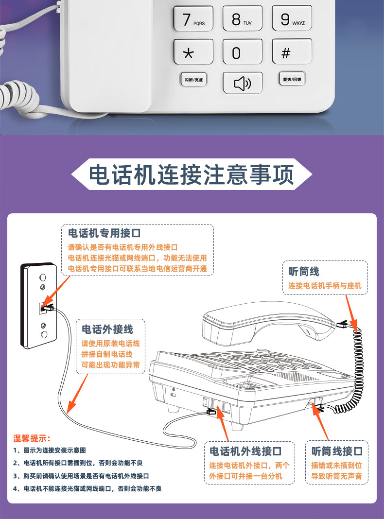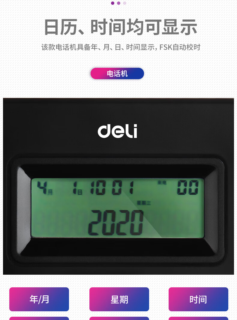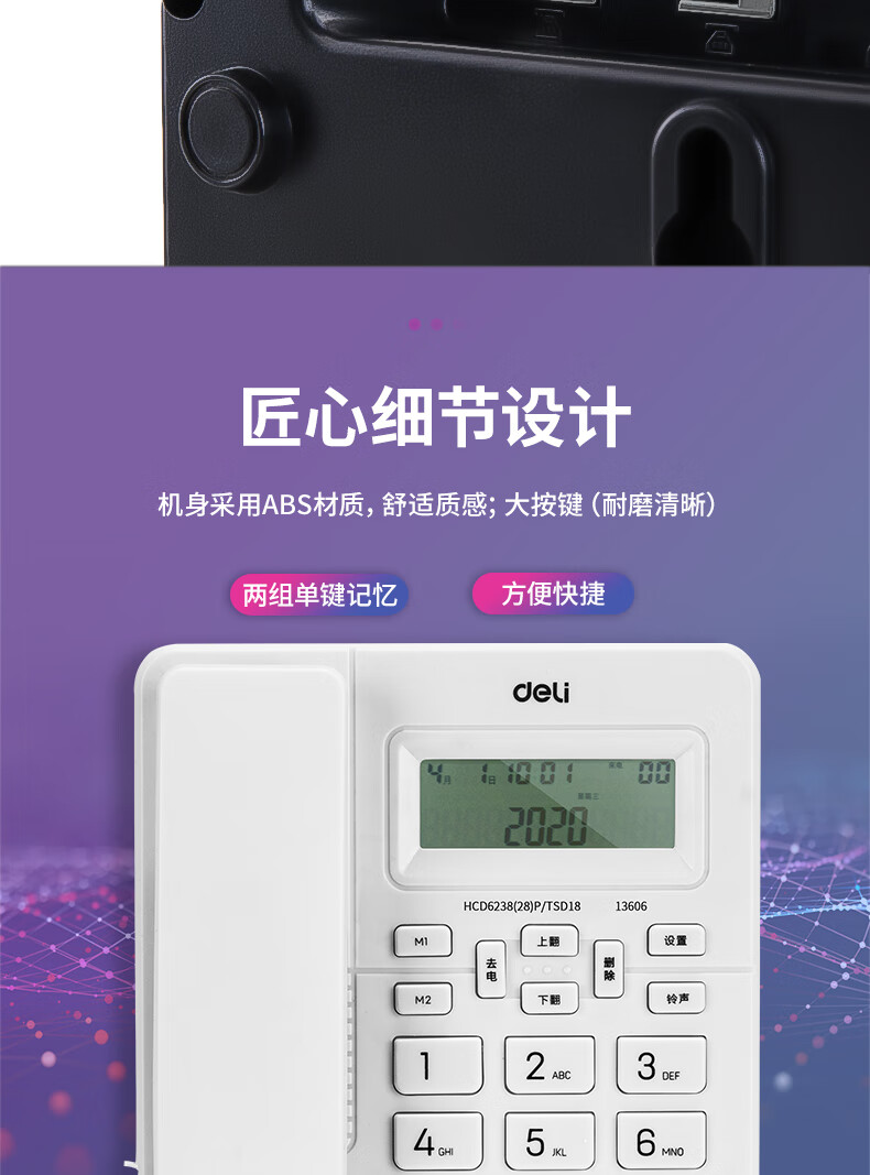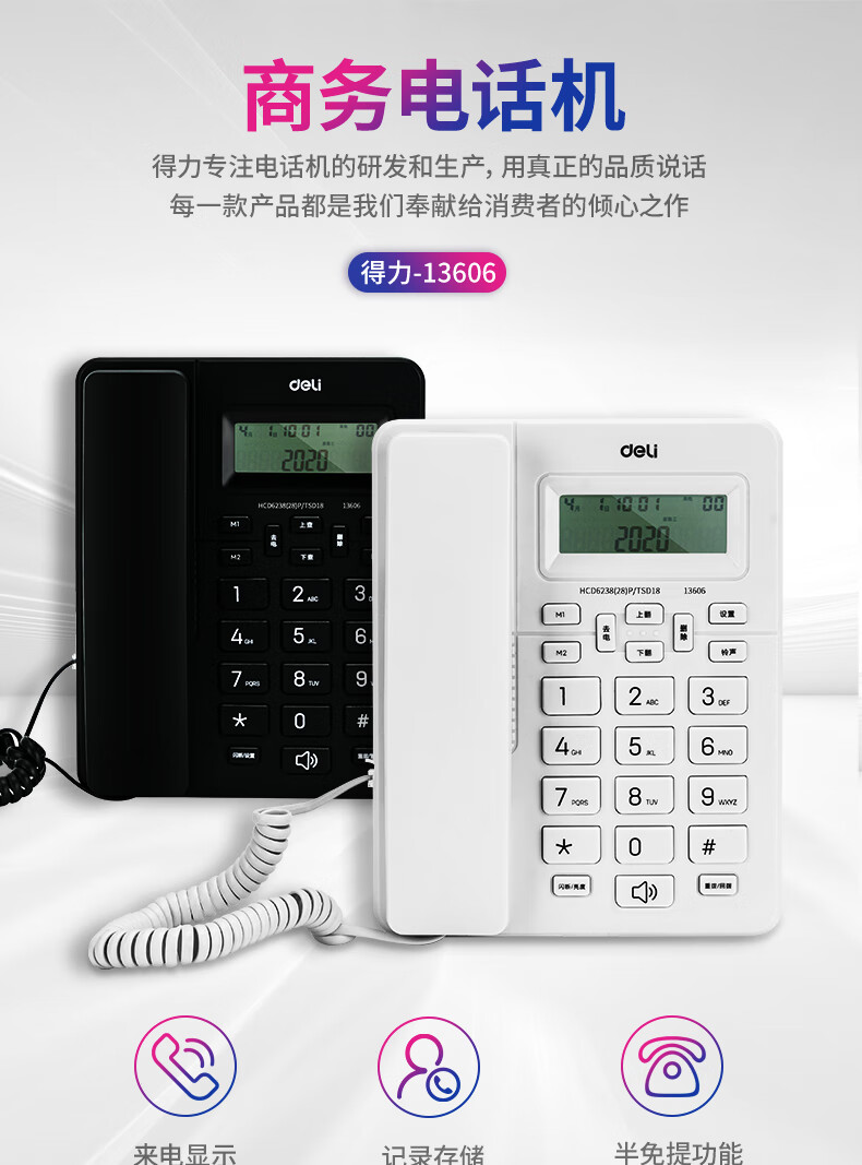 商品名稱:得力 電話機座機 固定電話 辦公家用 來去電查詢 可接分機 13606白