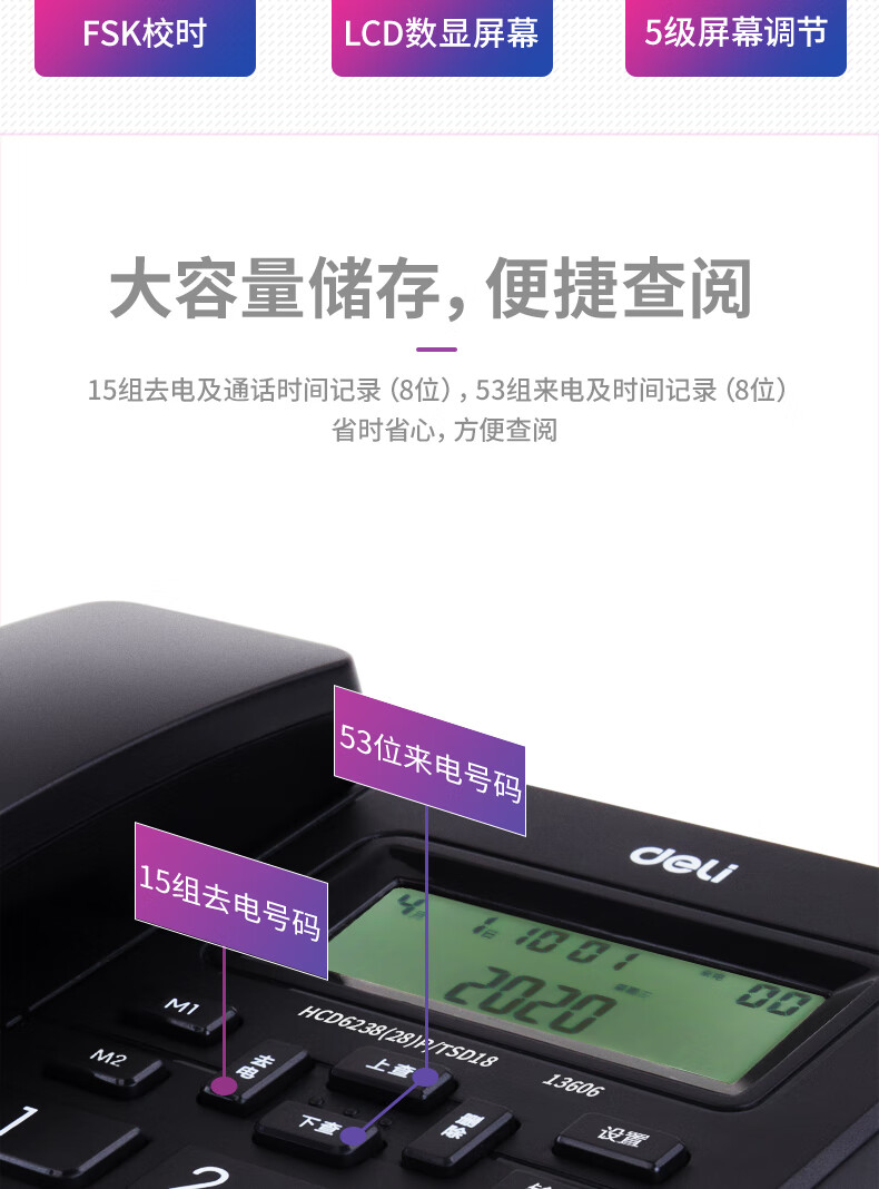 自營得力 電話機座機 固定電話 辦公家用 來去電查詢 可接分機 13606白